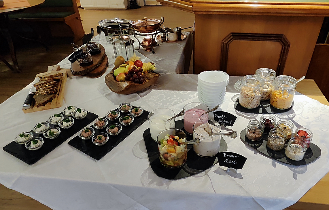 In our rustic dining room you have the opportunity to enjoy a varied and lovingly prepared breakfast buffet with homemade and regional products.