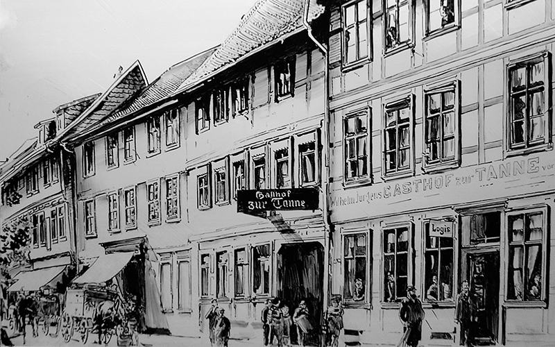 Die Geschichte unseres Hauses reicht weit bis ins 18. Jahrhundert zurück. Es ist uns bis heute nicht gelungen die Geschichte der „Tanne“ noch weiter zurückzuverfolgen, da das Stadtarchiv von Wernigerode kaum oder nur noch wenige Dokumente von vor 1752 hat. Unser Haus liegt in der damaligen „Neustadt“ von Wernigerode und hatte ursprünglich die Hausnummer 221.